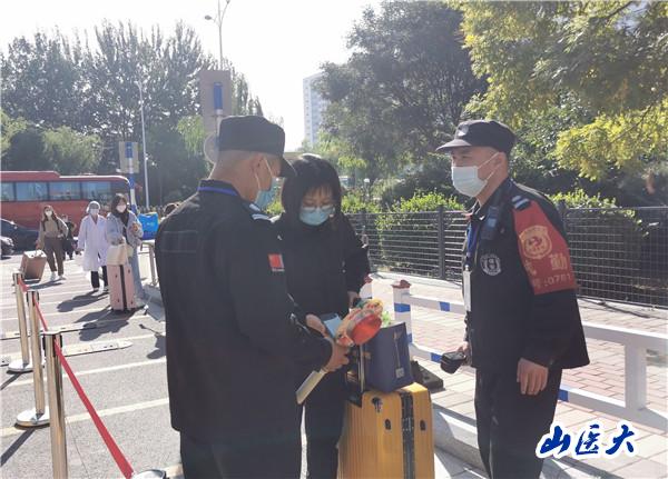 返校中,各院系认真落实“一人一策”,指导学生做好返校途中的防护、与接站对接、入校登记并核酸检测等系列工作。学校在晋中市高速口、火车站、高铁站设置专项工作组,配置志愿者、运送大巴,在交通卡口蹲点值守至夜里10:00,确保将最后一名学生“点对点”接返至学校。校门口设置专用通道和间隔线,做好物品消杀、体温检测、查验“两码一报告”、扫场所码等返校工作环节。