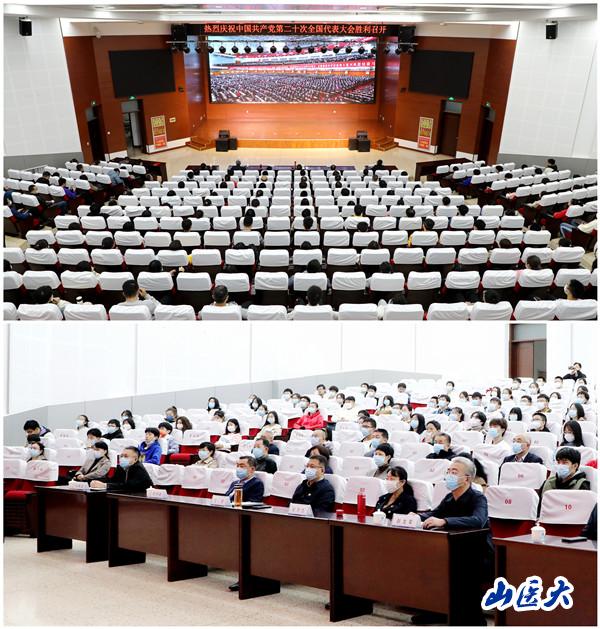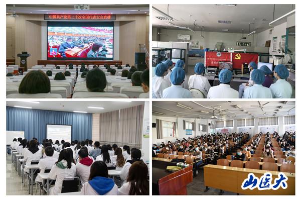 10月16日上午10时,中国共产党第二十次全国代表大会在北京人民大会堂隆重召开,习近平总书记代表十九届中央委员会向大会作报告。我校党员干部、师生医护员工以集中收看与分散自主收看相结合的形式收听收看。校党委理论学习中心组、处级以上干部、各学院学生代表在中都校区、迎泽校区和第一医院、第二医院、口腔医院的10个集中收看点收看党的二十大开幕会实况。各基层党组织和党支部组织师生医护通过网络、电视、广播等形式,因地制宜在实验室、临床一线、办公室、教室、餐厅等地点收听收看大会盛况。
