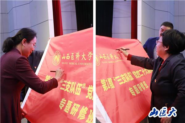 结业式上,彭月兰、陈显久为研修班学员颁发了结业证书,学员们接过结业证书并纷纷在班旗上签名,为此次的研修之旅画上圆满的句号。