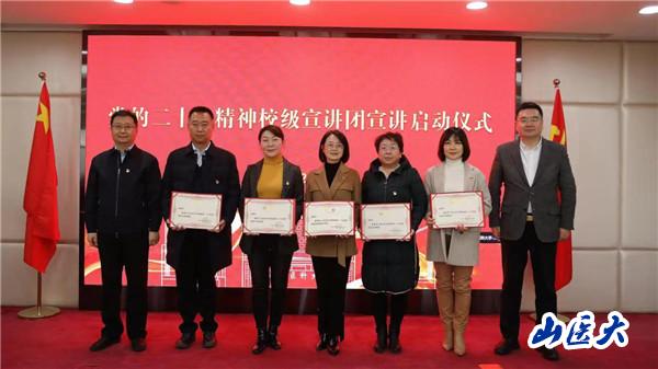 根据校党委安排,我校学习贯彻党的二十大精神校级宣讲团由校党委书记王军担任团长,包括校领导宣讲团、基层党组织理论学习中心组宣讲团、思政课骨干教师宣讲团、辅导员宣讲团和青春朋辈宣讲团五个分团,分别由全体校领导班子成员、各基层党组织书记、思想政治理论课骨干教师、思想政治辅导员、团学骨干力量组成。校党委要求,在校级宣讲团集中宣讲的同时,全校各单位、部门要结合自身实际,开展多种形式的基层宣讲活动,确保将党的二十大精神传达到每一位师生医护员工,使党的二十大精神成为指导全国一流研究应用型医科大学建设的强大思想武装。
