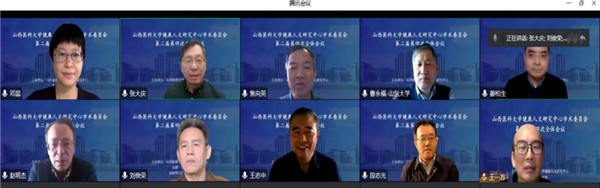 12月11日上午,我校以线上方式召开健康人文研究中心学术委员会二届四次会议。学术委员会主任委员张大庆教授,副主任委员段志光教授和赵明杰教授,委员王一方教授、姜柏生教授、刘俊荣教授、曹永福教授、王志中教授和邓蕊教授出席。校党委常委、副校长焦向英教授应邀出席会议,人文社会科学学院部分教师和研究生列席参会。