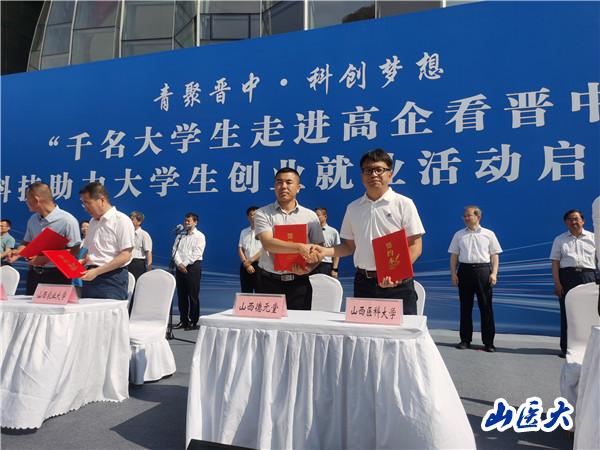启动仪式上,我校药学院与山西德元堂药业有限公司签订了创新创业就业合作协议。晋中市高新技术企业和科技创新平台提供首批近300个岗位,众多高校毕业生前来咨询、投递简历,部分毕业生与企业初步达成就业意向。