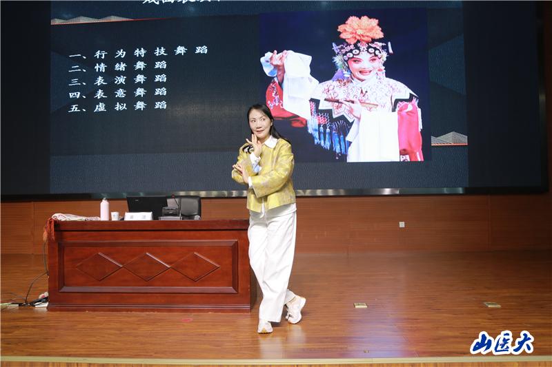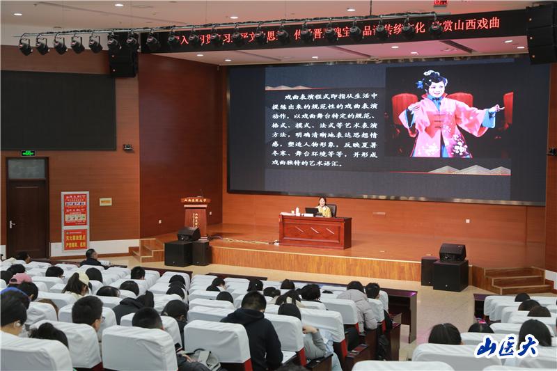 苗洁以“深入学习贯彻习近平文化思想,传承晋剧瑰宝”为题,结合自己对习近平文化思想的深入学习领会,从晋剧起源、戏曲表演程式、综述三个章节,为现场师生作了一场站位高、内涵深、生动鲜活的宣讲报告,带来了一场兼具政治性、历史性、学术性的文化大餐,带领大家领略了中国文明的伟大和中国文化的传承,并且深刻感受到了劳模工匠精神和使命担当。老师和同学们都被苗教授生动的宣讲和高超的戏曲表演艺术所感染,赞叹中华戏曲文化艺术的深厚底蕴。