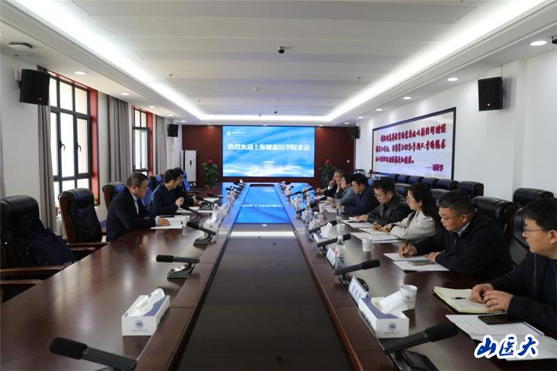 交流座谈会由副校长张岩波主持,党委宣传部、科学技术部、发展规划部、公共卫生学院、研究生学院负责人参会。会上,张岩波代表我校对上海健康医学院的来访表示欢迎,并介绍了学校的办学历史、基本情况以及近年来在学科建设、科学研究、研究生教育等方面的主要举措和成效。汤磊高度评价了学校的悠久历史和发展成绩,介绍了上海健康医学院的发展历史与定位,在人才培养、学科专业建设、科研发展等方面的基本情况。双方就科研机构改革与机制建设、公共卫生人才培养等方面进行了深入交流探讨。