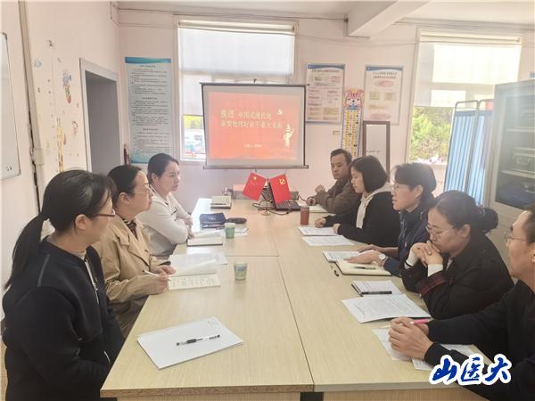 10月27日,儿科医学系党总支理论学习中心组集体学习扩大会议在迎泽校区会议室召开,系班子成员、各部门负责人及各支部书记参会,校党委理论学习工作领导小组成员张志红列席旁听,系党总支书记华楠主持会议。