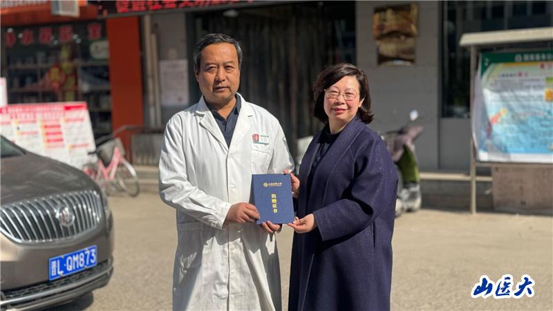 牛乐代表档案馆向冯根耀表示感谢,并授予捐赠证书。此次捐赠的医学教材,填补了我校档案馆藏关于“山西医学传习所”时期的空白。同时捐赠的医书对于医学研究和文献研究具有极高价值。