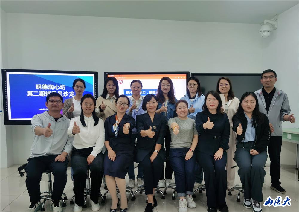 9月27日,学校组织部分思想政治辅导员开展以“学习贯彻党的二十届三中全会精神 做新时代辅导员”为主题的沙龙。山西财经大学陈霞副教授主讲,“明德润心坊”辅导员工作室负责人郭翠梅主持,工作室全体辅导员参加了沙龙活动。