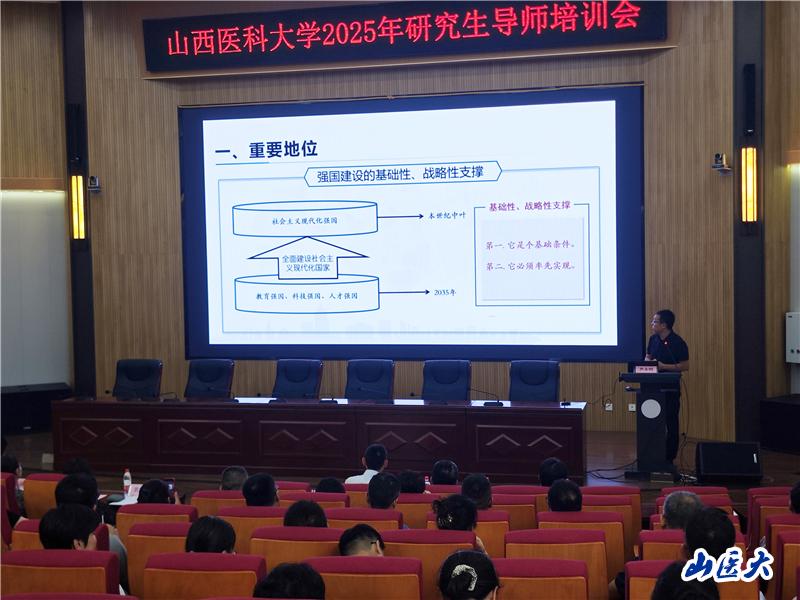 研究生学院依托中国学位与研究生教育学会“四有导师学院”在线研修平台,组织研究生导师参加线上专题培训,围绕《中华人民共和国学位法》、四史教育、政策解读、教育动态、教育家精神等板块内容,精选国内知名专家在线课程,要求各培养单位和导师高度重视本次研修工作,并将导师参与及完成情况作为导师年度考核、研究生招生指标分配的重要依据。研究生学院联合基础医学院、公共卫生学院举办 “正师风、比奉献,争做四有导师”专题培训会。邀请山西省人民政府学位委员会办公室副主任、山西省教育厅学位管理与研究生教育处副处长芦永明作《践行教育家科学家精神,育“经师” “仁师”相统一的大先生》专题报告,教育引导广大导师当好学生成长成才的引路人。曹济民、武志芳、余红梅等多位资深导师围绕“立德树人” “学术规范” “导学关系” “科研创新”等主题,进行了专题讲授和经验分享。研究生学院还先后赴药学院、第二临床医学院、第五临床医学院和附属肿瘤医院等培养单位,指导开展导师培训。各培养单位根据学校研究生导师培训总体安排,结合学科特色与发展需求,聚焦高质量创新人才培养、构建和谐导学关系、提升导师指导水平等内容,扎实推进导师培训工作。