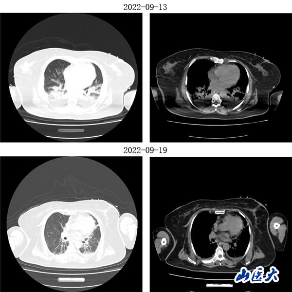 (女性患者治疗前后胸部CT对比)