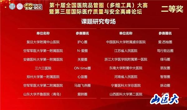 我校第二医院代表队在第十届全国品管圈大赛中再创佳绩