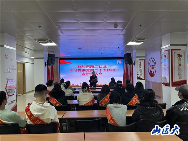 最后,社区面向学生志愿者开展了“学习贯彻党的二十大精神宣讲报告会”。社区党委书记兼主任周渺对党的二十大精神进行了全面讲解与诠释,同学们认真聆听,获益匪浅,更加坚定了永远跟党走的信心和决心,立志学好专业知识,练就过硬本领,牢记初心使命,矢志不渝地奋斗,为祖国发展贡献自己的青春力量。