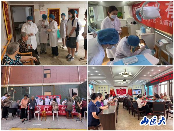 立足专业实践,义诊温暖乡村。实践队先后前往阳泉市社会福利院、阳泉市敬老院、盂县红楼社区和昔阳县乐平镇巴洲村开展爱心医疗服务活动。充分发挥口腔医院专业优势,为当地居民量血压、口腔健康科普、移动诊疗车口腔健康检查等服务,尤其是针对6-9周岁的适龄儿童开展窝沟封闭初筛工作。为放松群众身心,团队成员还为巴洲村村民现场进行口风琴演奏,组织群众合唱《歌唱祖国》等歌曲,群众参与热情高涨,反响热烈。其中,阳泉市社会福利院将“奉献爱心”的捐赠纪念牌赠予实践队,激发了队员们敬老助残的社会责任感和志愿服务精神。