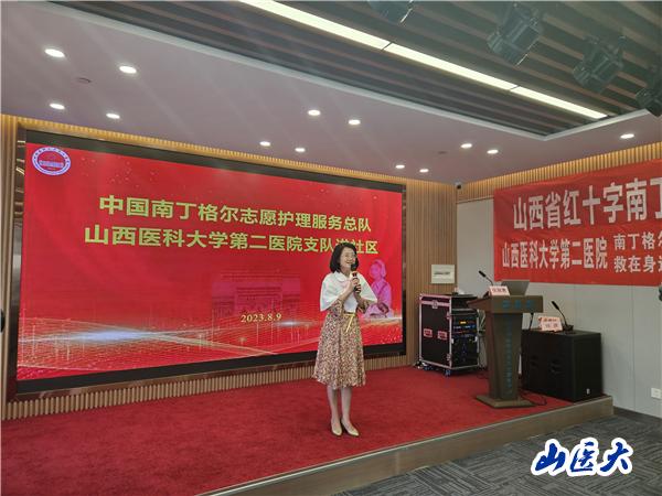 8月9日上午,我校第二医院护理部副主任、第49届南丁格尔奖章获得者张颖惠带领医院心内科宋雅玲、杨君护士长,急诊抢救室张永刚护士长,重症三病区王彩玲护士长、风湿三病区唐玉萍护士长,血液二病区张琳护士长,急诊科李星护士,走进太原市杏花岭区坝陵桥社区卫生服务中心开展志愿服务活动。为活动现场50余名群众进行相关科普教育。活动大力弘扬了南丁格尔精神,秉承了“人道、博爱、奉献”的红十字价值理念,以前辈为榜样,积极投身志愿活动,到群众需要的地方去,把健康理念和知识真正传播开来,用实际行动诠释“护佑生命、竭诚奉献、专业精湛、勇气非凡”的南丁格尔精神。