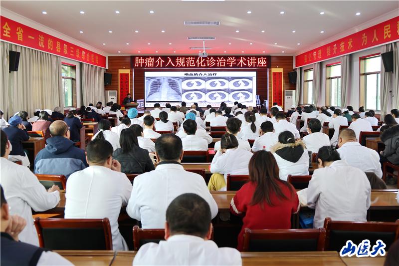 1月9日,第一医院肿瘤与血管介入科承办的“介入规范化诊治推广普及百县行”系列活动在稷山县举行,稷山县人民医院院长黄勇勤、各临床科室及周边市县医院医务人员300余人参加。
