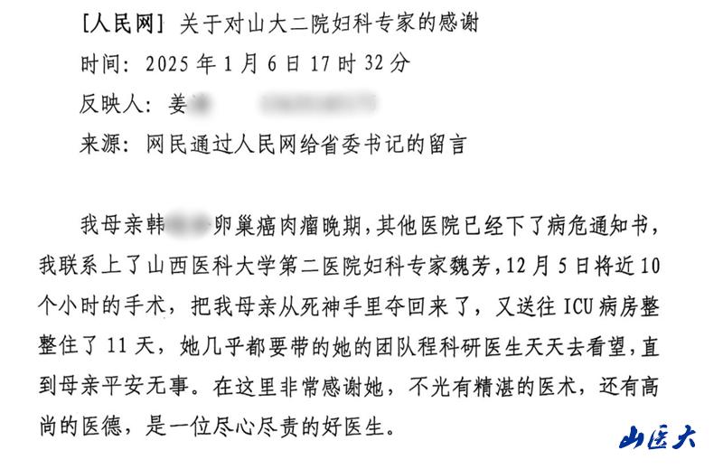 第二医院党委书记成晓龙在接到患者感谢信时指出:“从技术精湛到心灵共鸣,从治愈疾病到抚慰灵魂,这就是新时代医者精神的完美诠释。”目前,医院已启动多学科随访机制,为韩女士量身定制化疗及营养支持方案,续写这场生命接力的新篇章。