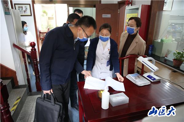 4月12日,由山西省委教育工委宣传部副部长方惠斌、山西中医药大学党委宣传部部长张斌仁、山西开放大学党委宣传部副部长袁鹰三人组成的省文明单位创建检查组来到