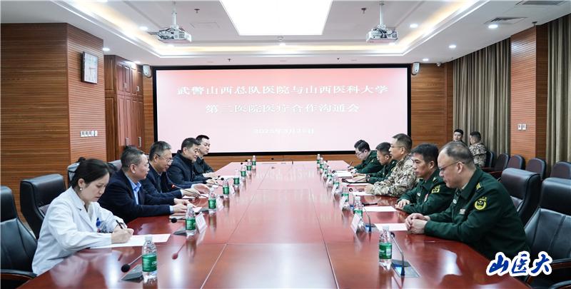 会上,武警山西总队领导及武警山西总队医院负责人介绍了武警山西总队医院基本情况及发展规划,表达了与我校第二医院开展医疗合作的意愿和需求。