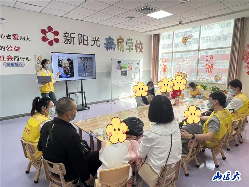 4月10日下午,儿科医学系研究生党支部在省儿童医院血液科“新阳光病房学校”开展“医者童心 慧声绘色”主题党日活动,本次活动由辅导员范晋楠带队。