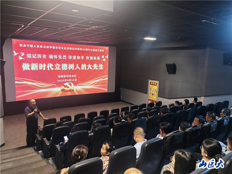 8月24日,基础医学院党委组织全院教职工党员集体观看了电影《南京照相馆》。各党支部以沉浸式观影方式开展“铭记历史 缅怀先烈 珍爱和平 开创未来——做新时代立德树人的大先生”主题党日活动,引导党员在历史回望中厚植爱国情怀、强化责任担当。